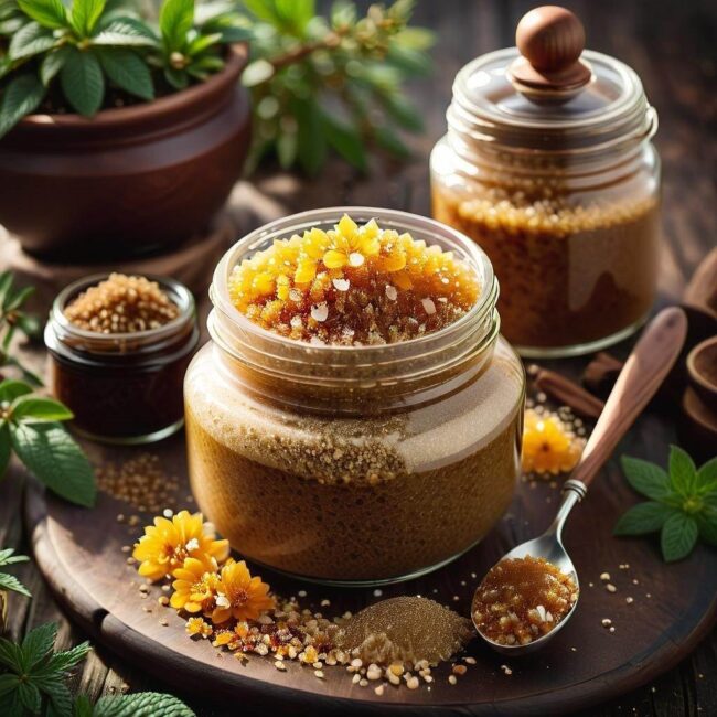 - Sposób przygotowania: Połącz cukier z miodem, a następnie dodaj sok z cytryny. Mieszaj do uzyskania jednolitej konsystencji. Nałóż na skórę i masuj, zwracając szczególną uwagę na suche miejsca, takie jak łokcie i kolana.